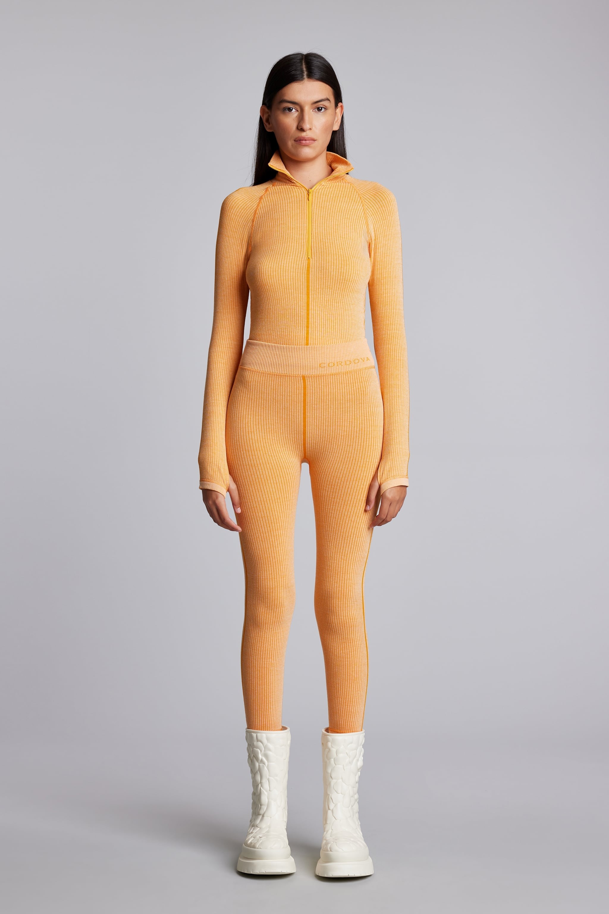 Wyjątkowa dwukolorowa tkanina prążkowana ze szwami podkreślającymi figurę. Bezproblemowa konstrukcja. Dwukolorowe ściągacze. Wysoki kołnierz, zamek błyskawiczny. Otwory na kciuki przy otwarciu rękawa.