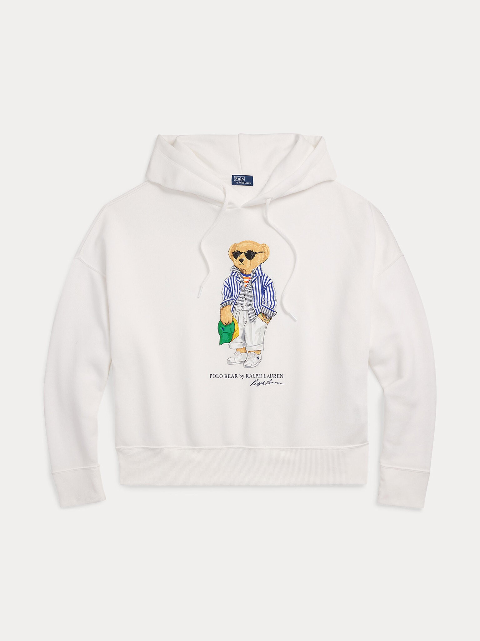 Przód tej miękkiej, polarowej bluzy z kapturem zdobi gumowany nadruk z charakterystycznym logo i maskotką marki Ralph Lauren – misiem Polo.