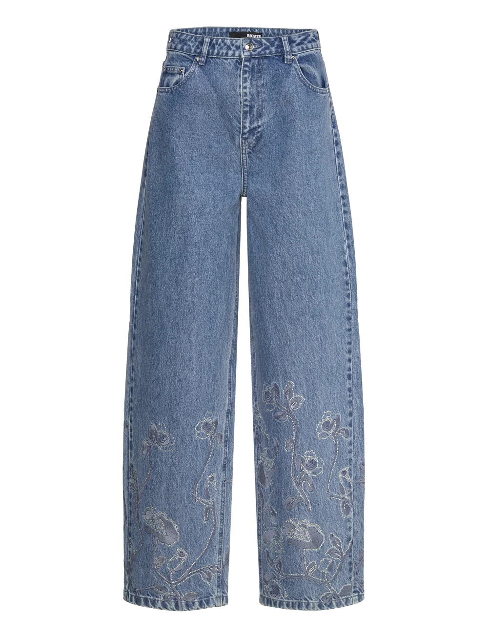 Spodnie Damskie ROTATE Rhinestone Wide Leg Jeans Medium Blue Denim