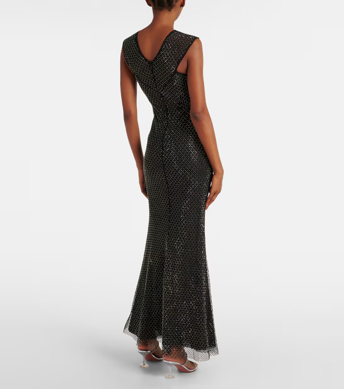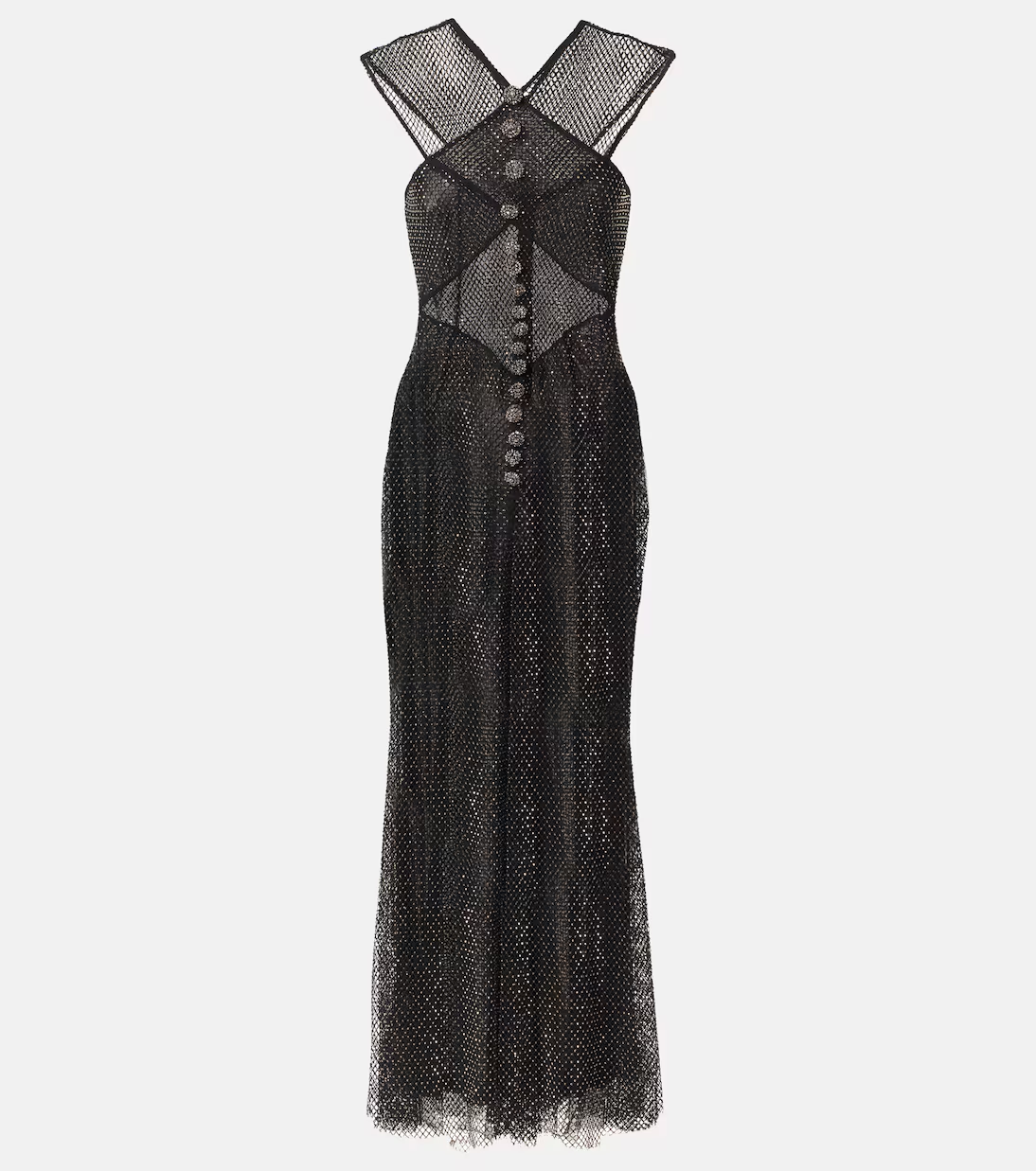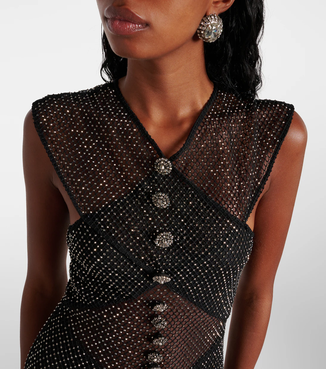 Sukienka SELF-PORTRAIT BLACK RHINESTONE FISHNET CROSSOVER MIDI DRESS