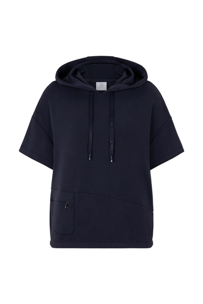 Dzięki miękkiemu dotykowi i nowoczesnemu, dwustronnemu przetwarzaniu wykonanemu z technicznego modalu, oversize’owa bluza z kapturem z krótkim rękawem jest ulubionym elementem wyglądu o wysokich osiągach. Elastyczny dół i kieszeń na zamek zapewniają swobodne wykończenie, a kaptur ze sznurkie i emblematem B stanowią akcenty.