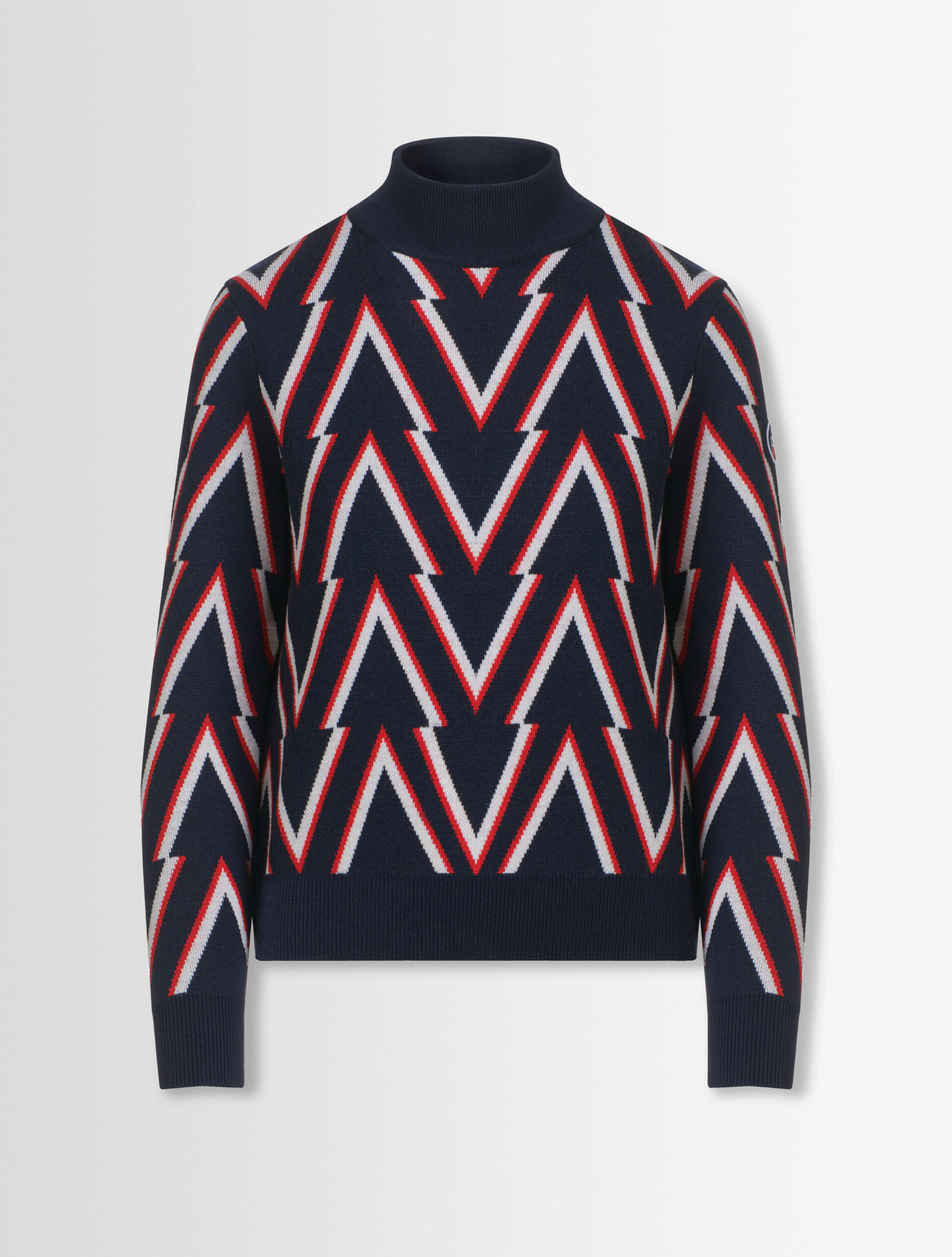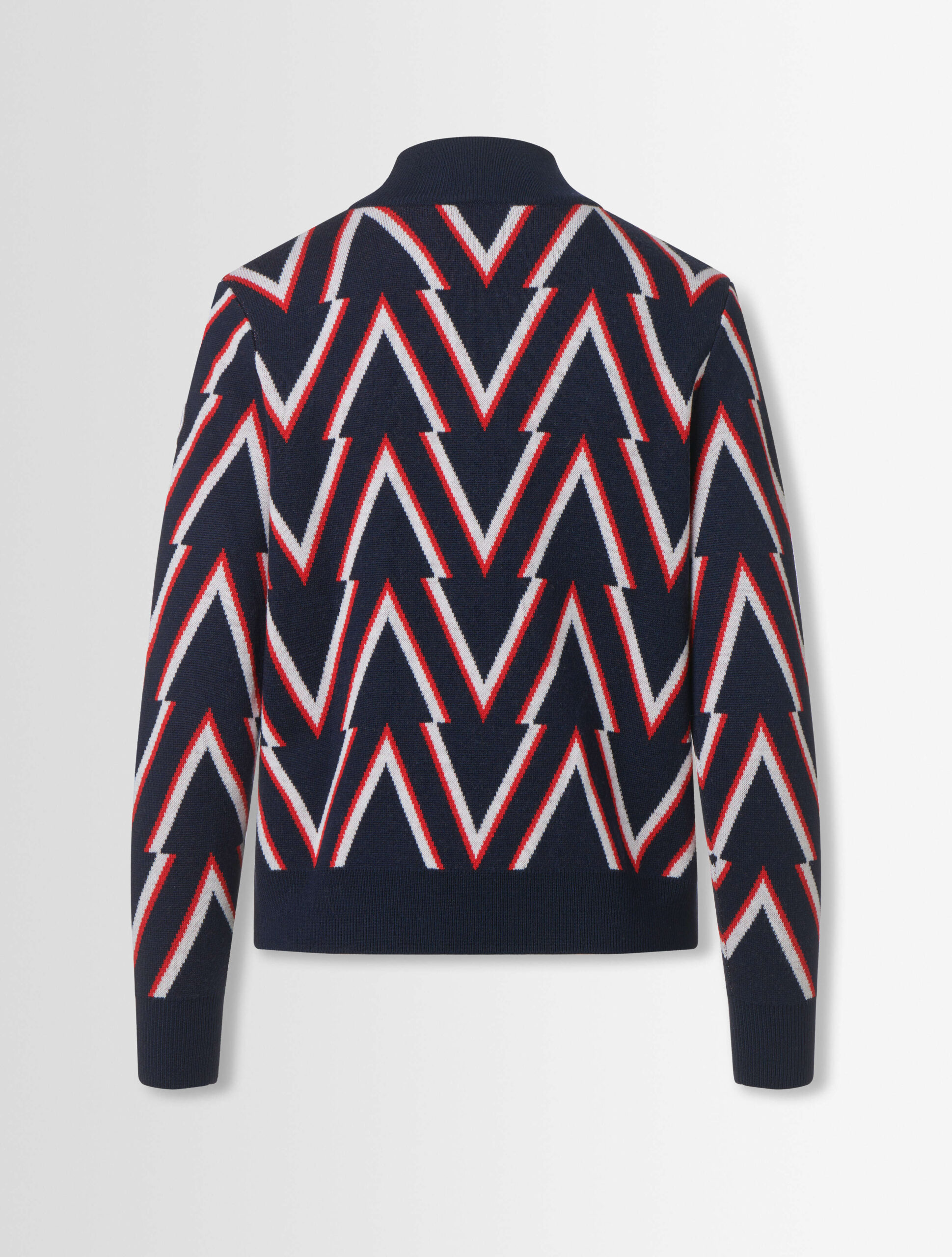 Sweter Meera wyróżnia się geometrycznym wzorem na całej powierzchni. Wykonany jest z wełny merynosów i będzie doskonałym uzupełnieniem eleganckiej i nowoczesnej stylizacji.